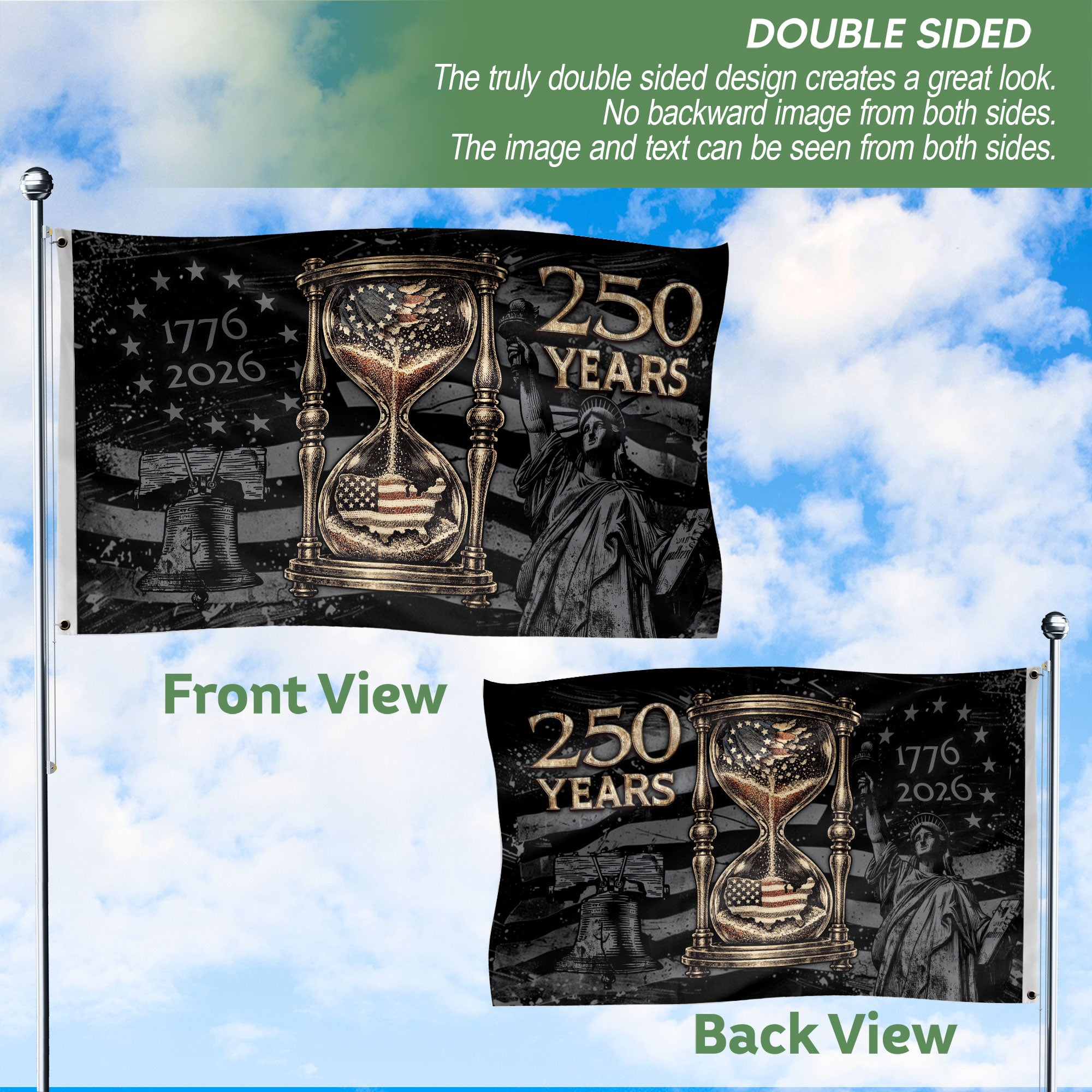 Celebrate the 250th anniversary of the United States from 1776 to 2026 with this patriotic heritage flag featuring the iconic American eagle. This flag symbolizes freedom, strength, tradition, unity, and enduring patriotism. Perfect for displaying at home, events, or outdoor spaces to honor American history and national pride. Crafted with high-quality, weather-resistant materials for vibrant colors and long-lasting durability, it withstands wind, rain, and sun while maintaining its bold design. Ideal for veterans, history enthusiasts, and anyone proud of their American roots. Hang it on your porch, at parades, veterans’ events, or Fourth of July celebrations to showcase your patriotism. The striking American eagle design paired with the 1776-2026 dates makes it a meaningful tribute to 250 years of American independence.