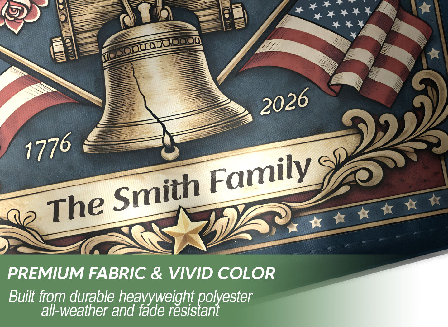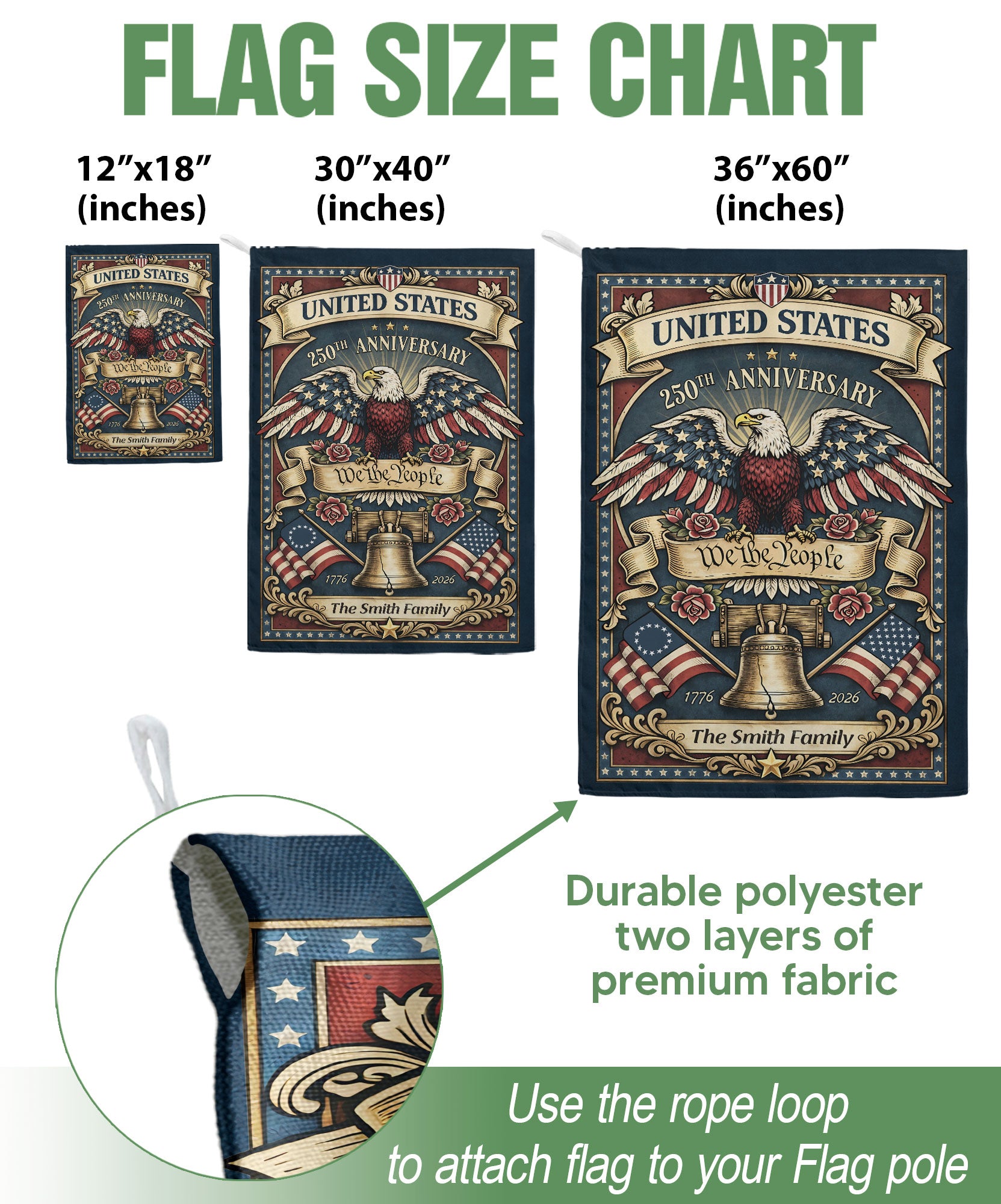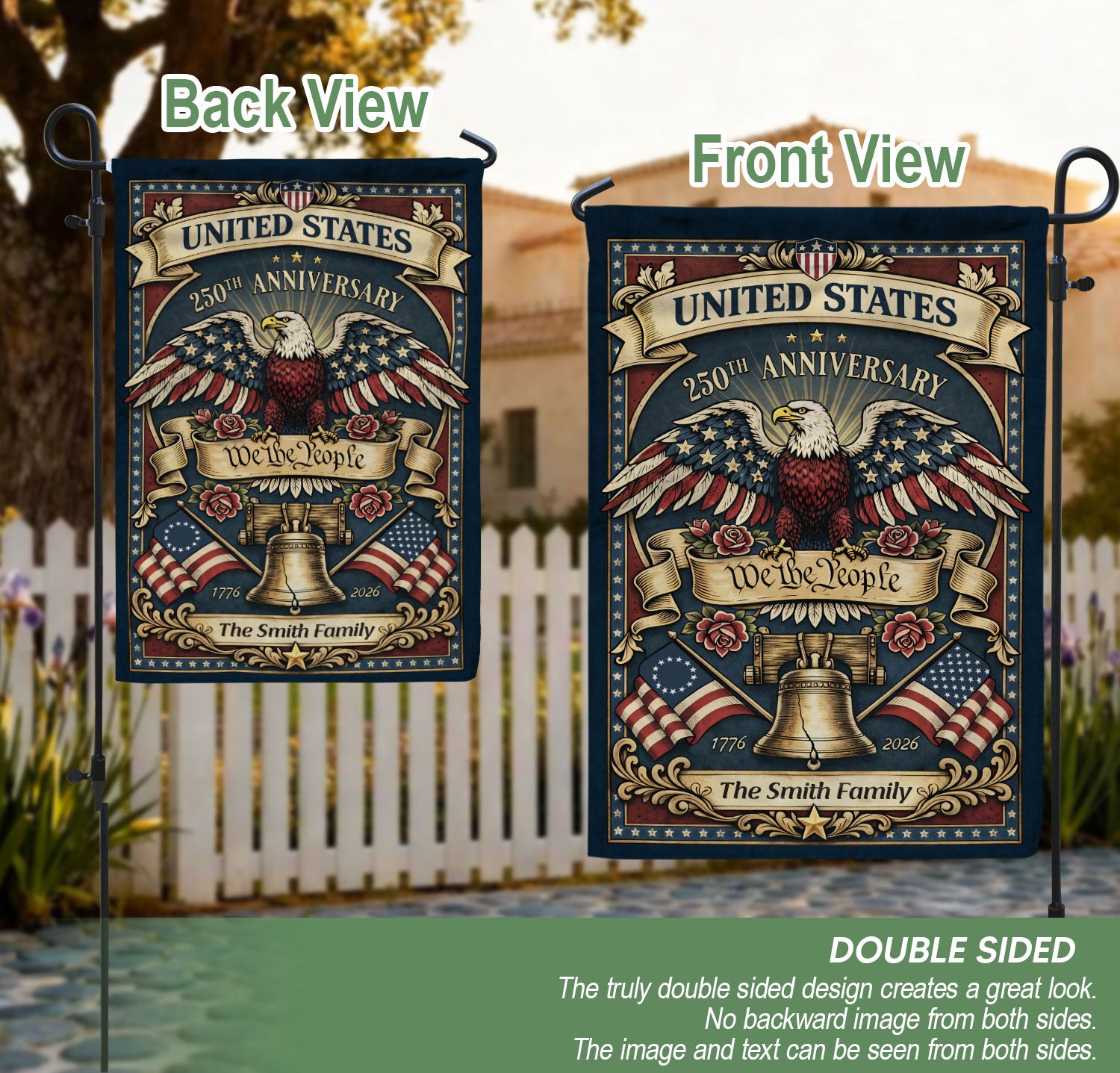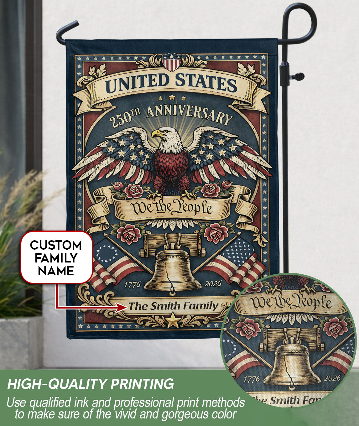 United States 250th Anniversary Garden Flag Custom Family Name Eagle Liberty Bell We the People 1776-2026