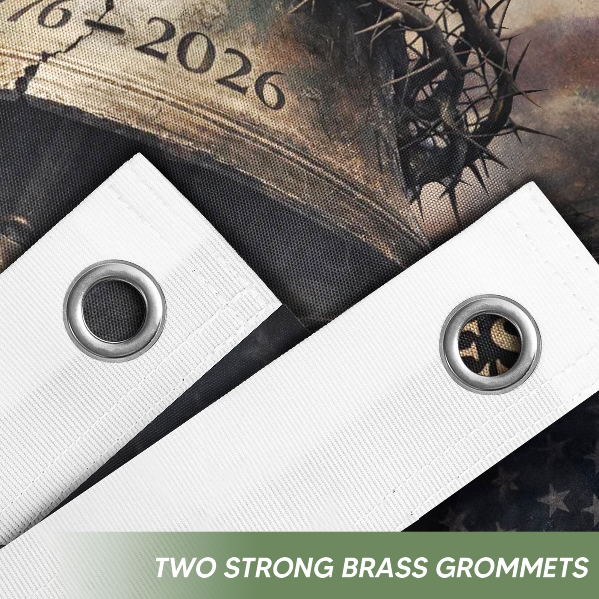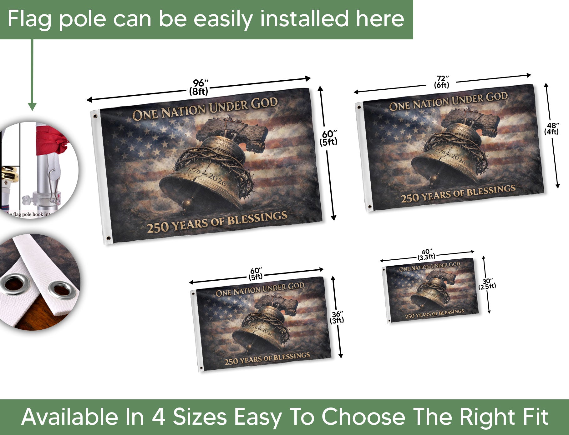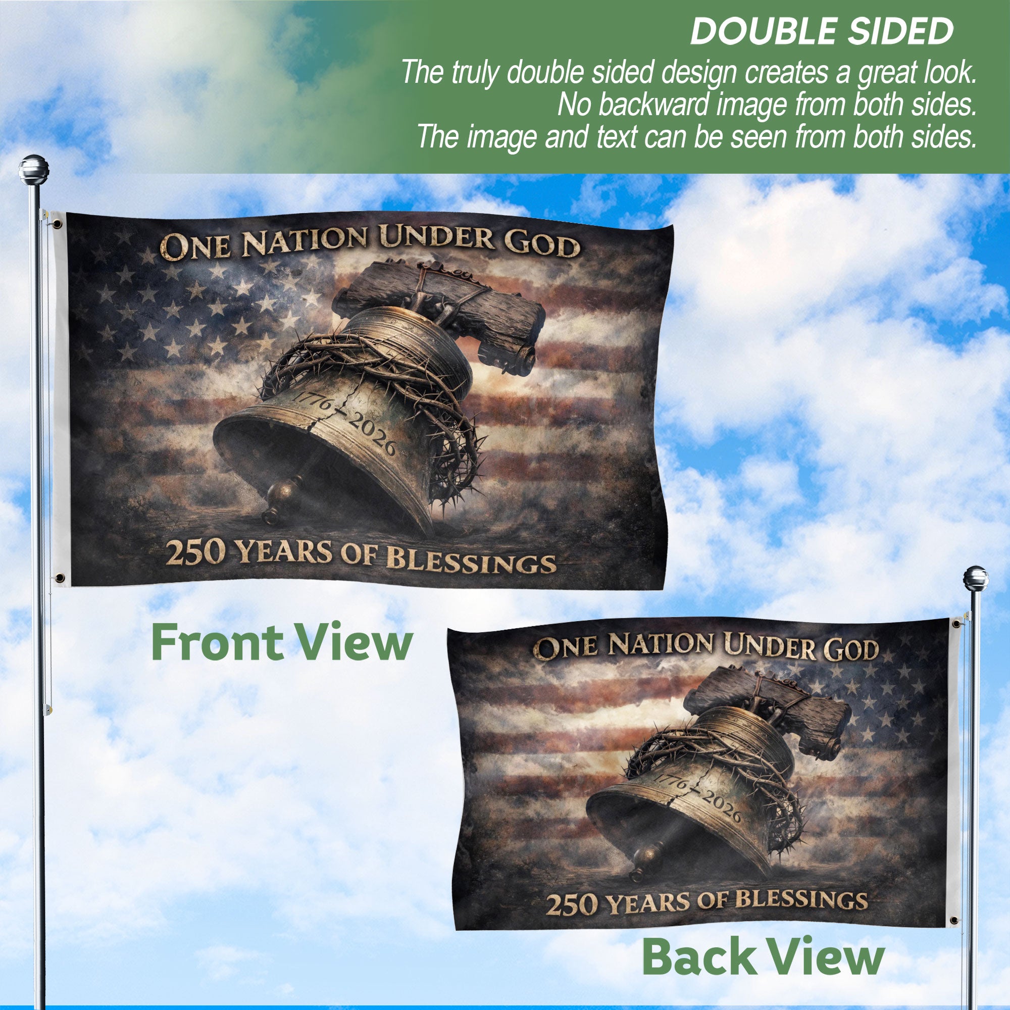 USA 250th Anniversary 1776-2026 Double Sided Patriotic Flag with Liberty Bell, Crown of Thorns, One Nation Under God