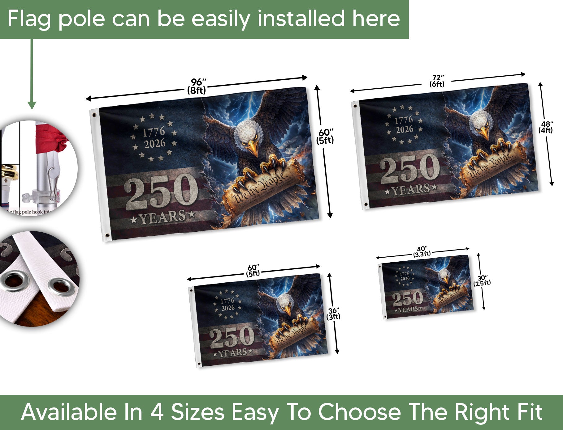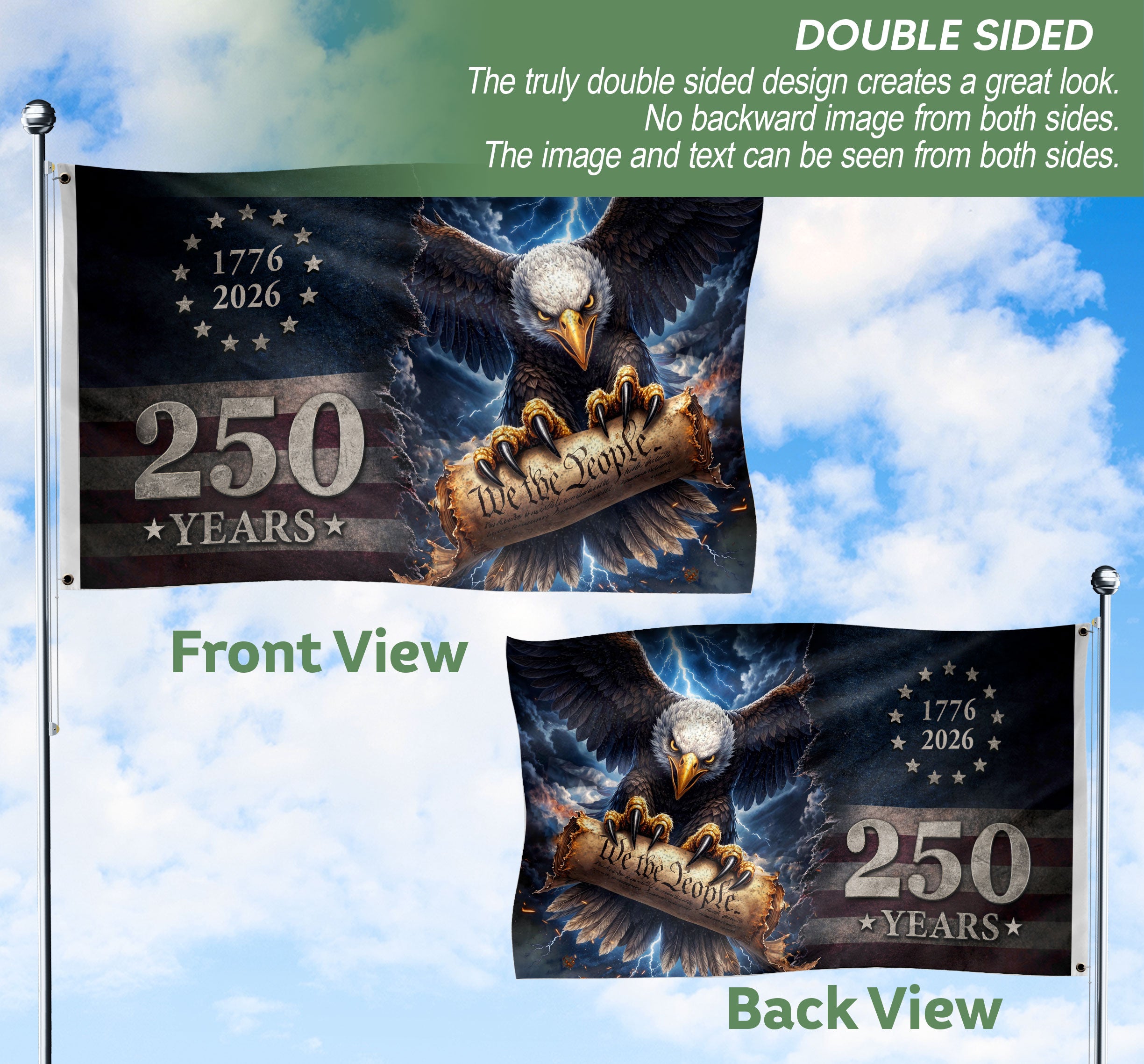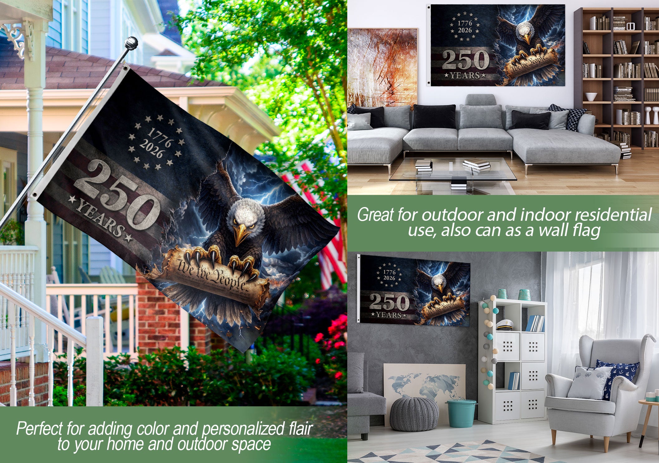 USA 250th Anniversary 1776-2026 House Flag Double Sided Vintage Bootleg Eagle Lightning We The People