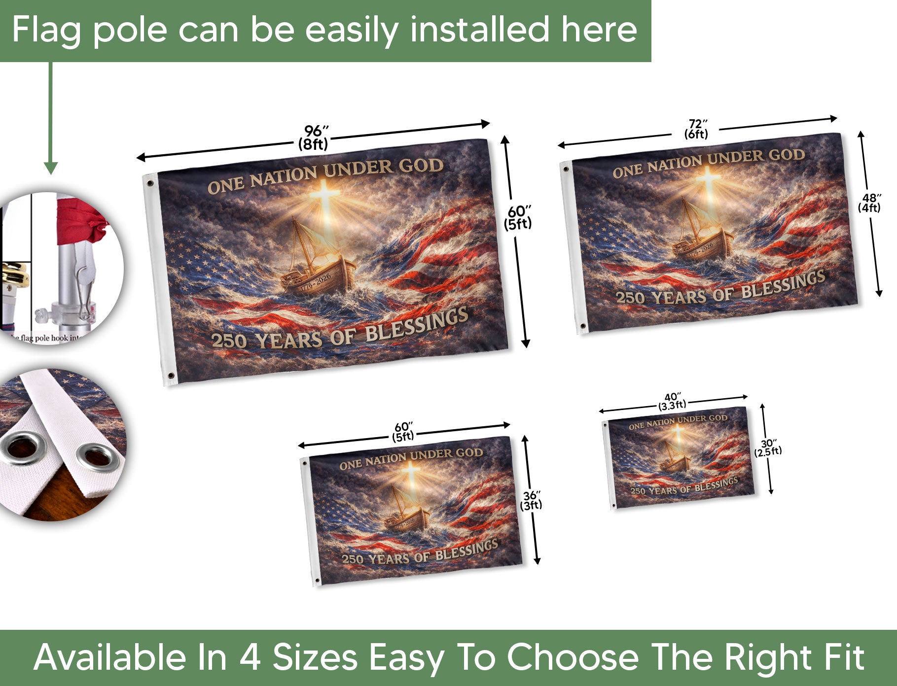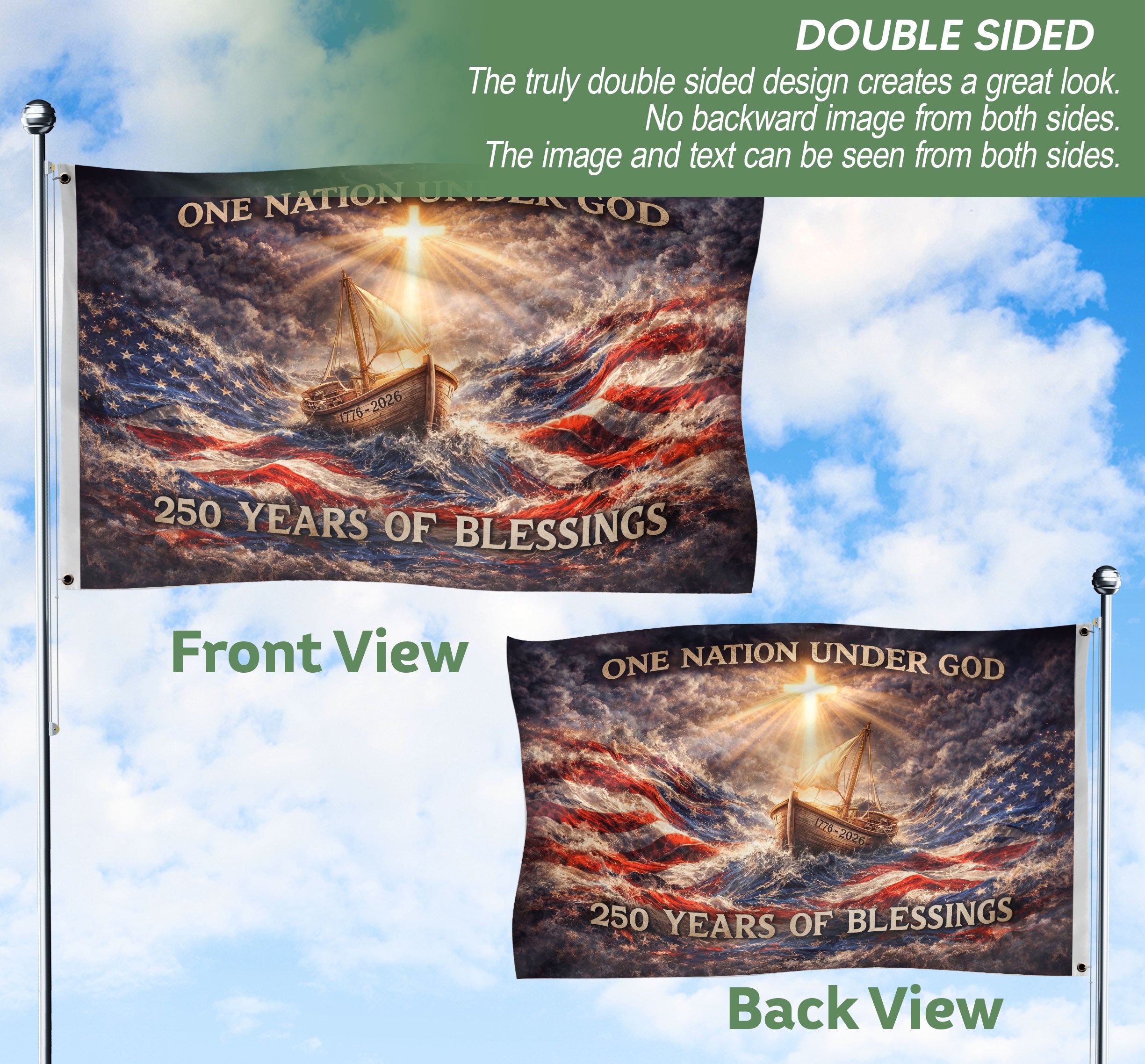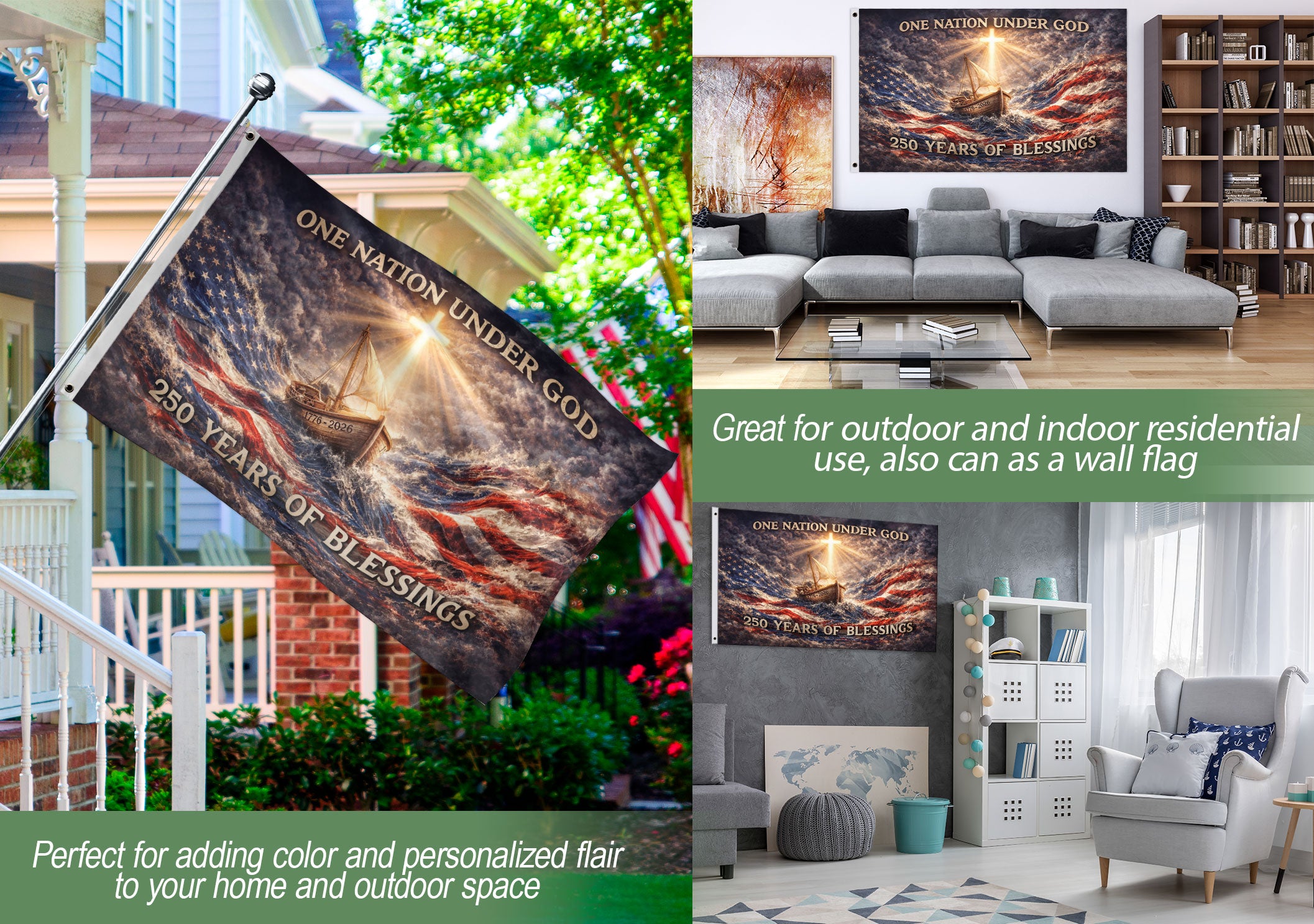 USA 250th Anniversary Double-Sided House Flag 1776-2026 One Nation Under God Sailing Ship