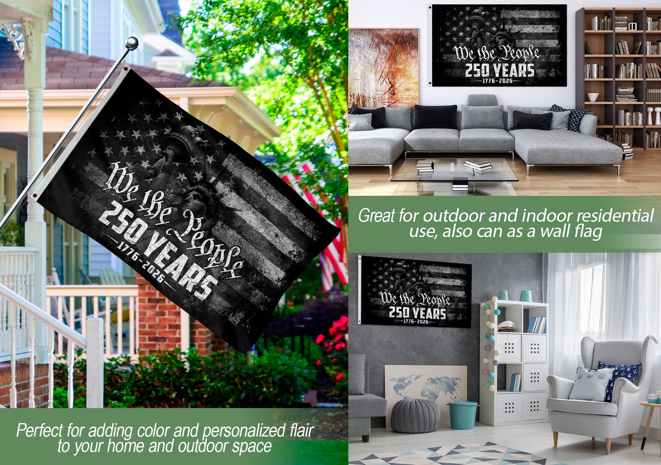 Celebrate America’s 250th anniversary with this patriotic USA flag featuring the iconic ‘We The People’ inscription and the Statue of Liberty. Spanning 1776-2026, this design honors the founding principles of unity, liberty, and democracy. Perfect for displaying national pride during Independence Day celebrations, historical commemorations, or everyday expressions of American heritage. Crafted with high-quality materials for vibrant colors and durability, it’s ideal for indoor or outdoor use, making it a meaningful addition to homes, offices, or patriotic events.