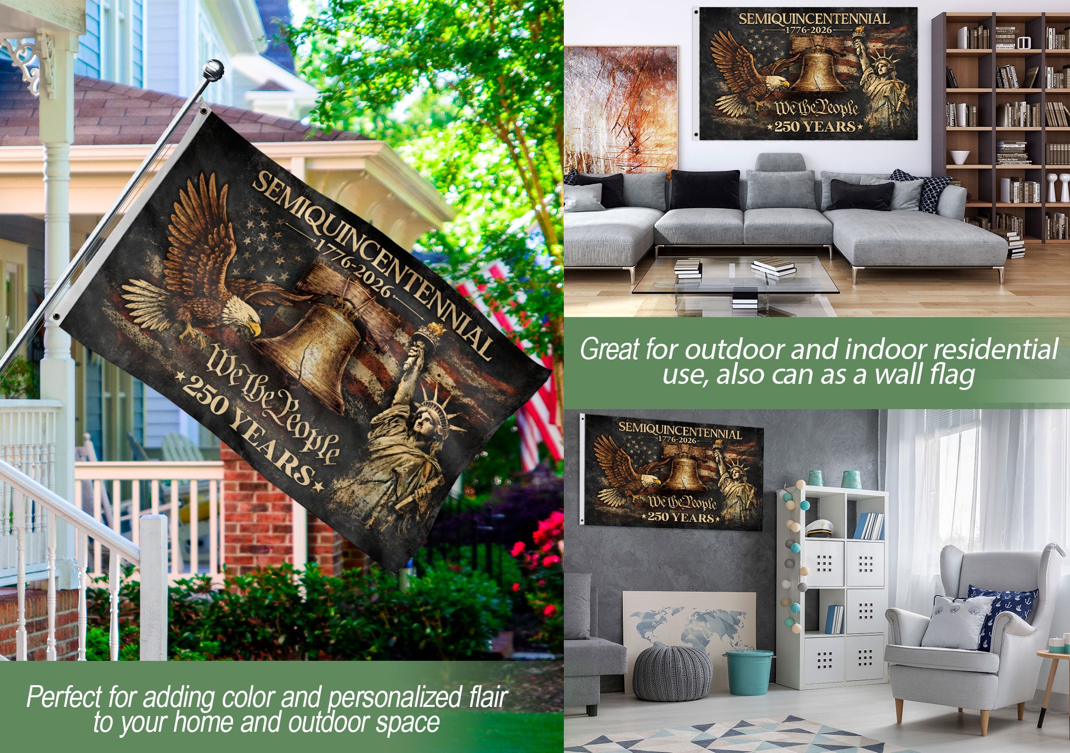 250 Years American Flag 1776-2026 Eagle Liberty Patriotic Decor