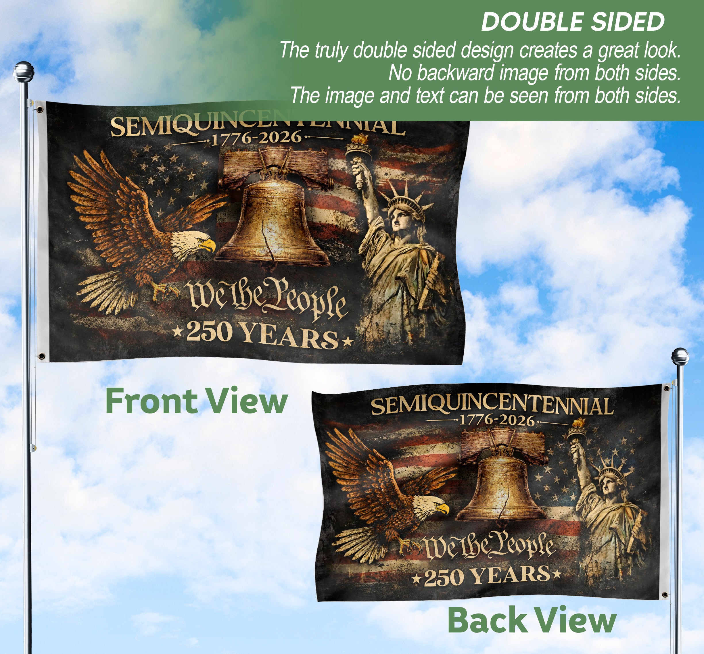 USA 250th Anniversary Double-Sided House Flag 1776-2026 Eagle Design