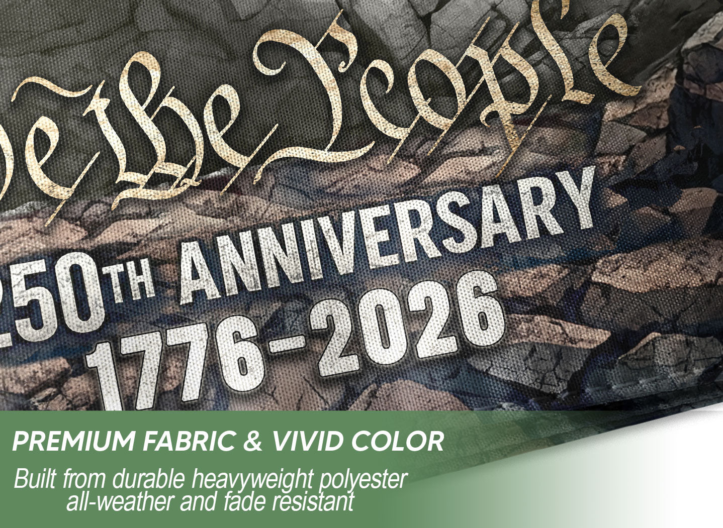 Celebrate America’s 250th anniversary from 1776 to 2026 with this striking double-sided house flag. Featuring the iconic Mount Rushmore presidents, a soaring patriotic eagle, the bold American flag, and the empowering ‘We The People’ motto, this flag honors 250 years of independence. Crafted for durable outdoor use, it’s perfect for yard display, porches, or gardens. The vibrant, weather-resistant design ensures long-lasting color and clarity on both sides, making it an inspiring tribute to American spirit and history. Ideal for patriots, history enthusiasts, and Fourth of July celebrations.