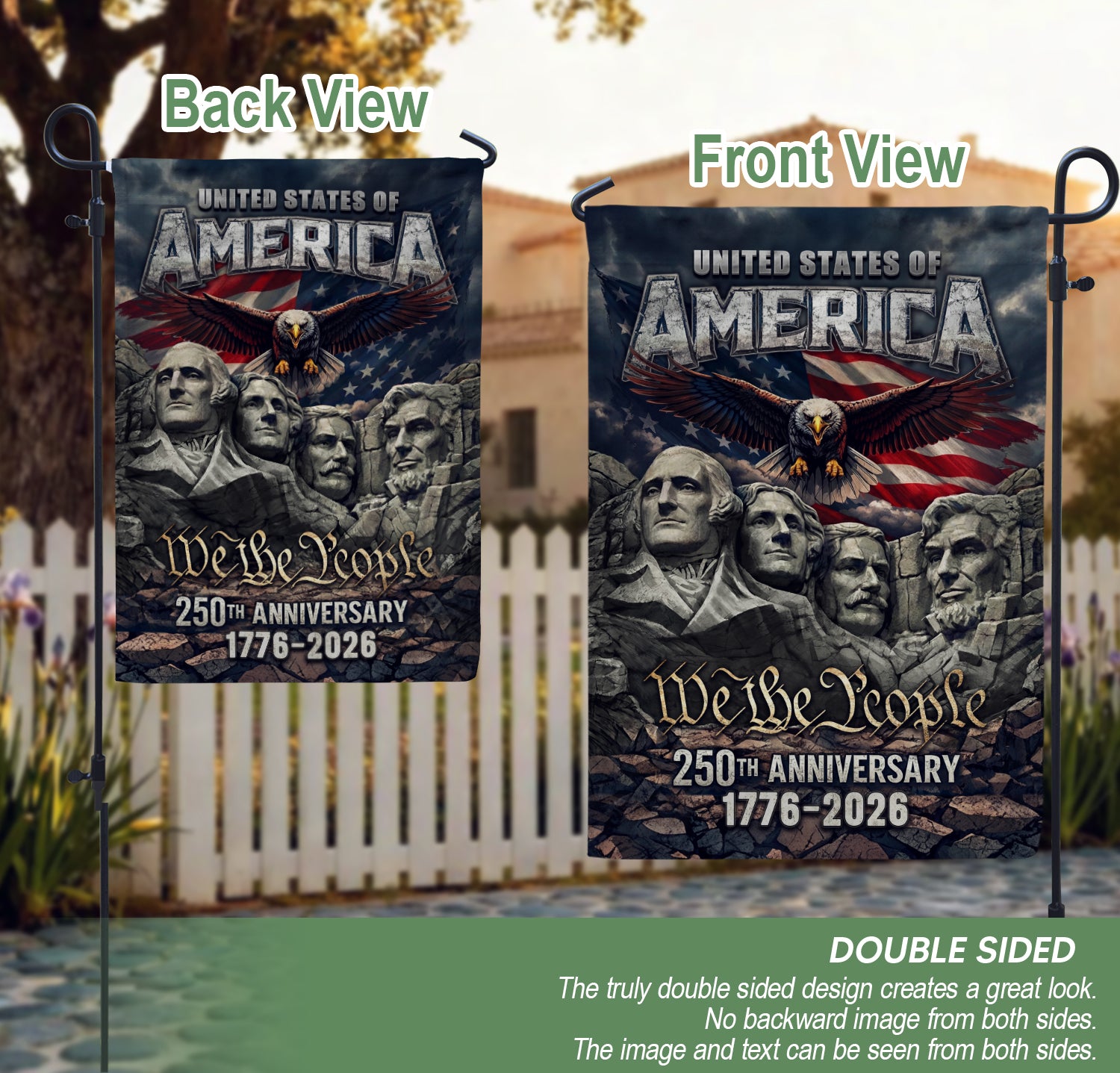 USA 250th Anniversary House Flag 1776-2026 with American Flag Eagle Mount Rushmore We The People Double-Sided Outdoor Yard Decor