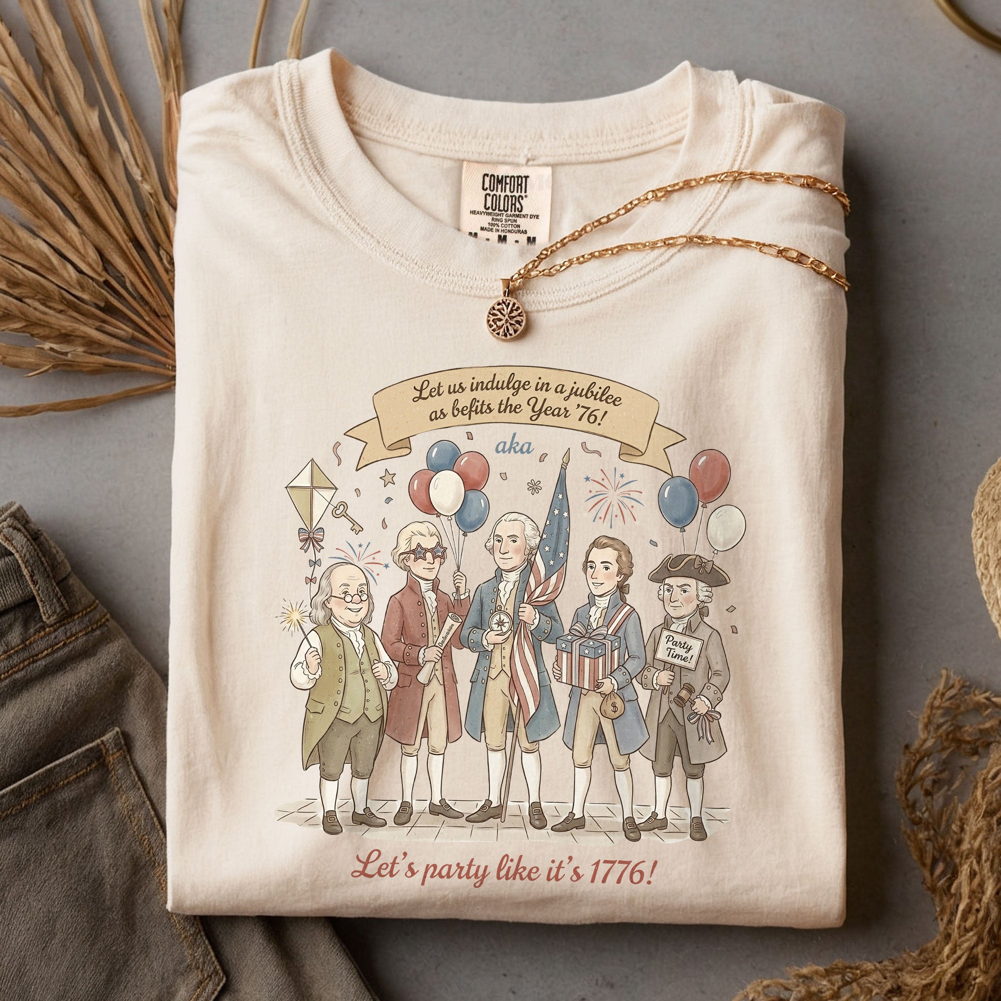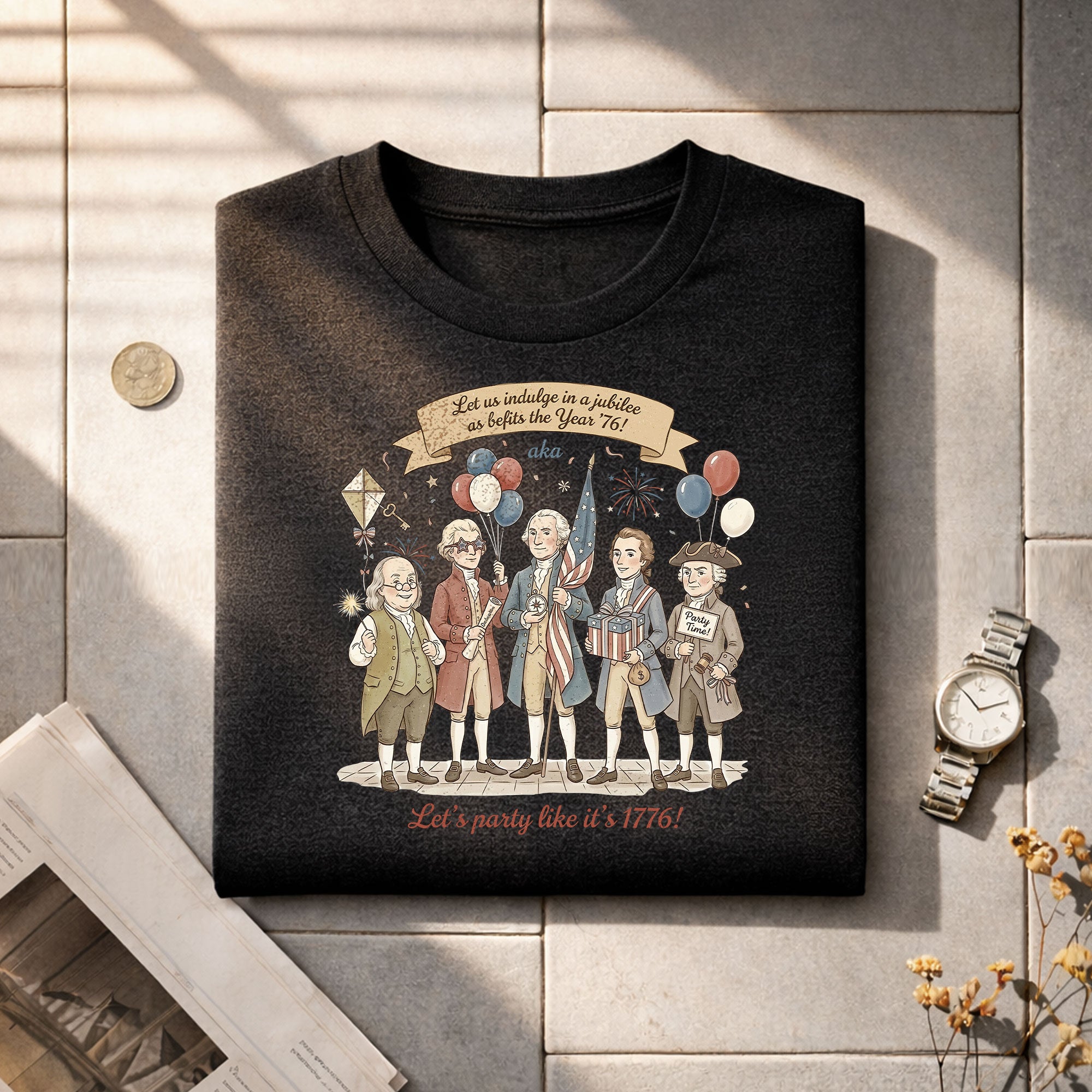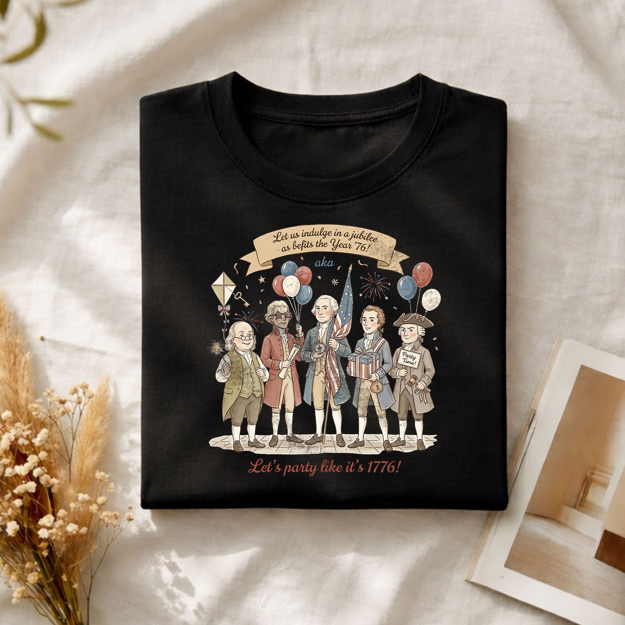 Celebrate American history with this Vintage Funny Founding Fathers Shirt featuring the iconic phrase “Let’s Party Like It’s 1776.” Designed in a classic retro style, this patriotic tee is perfect for Independence Day, parties, or everyday wear. A fun and unique gift for history lovers and USA pride fans.
