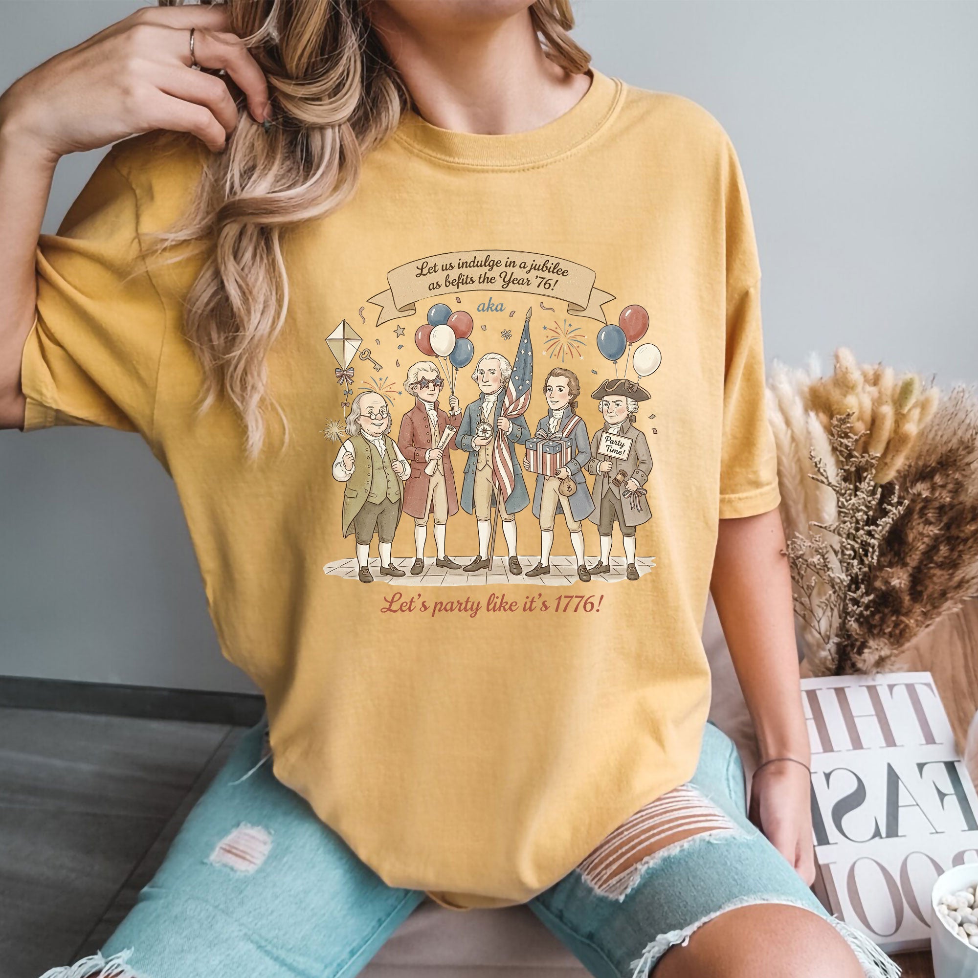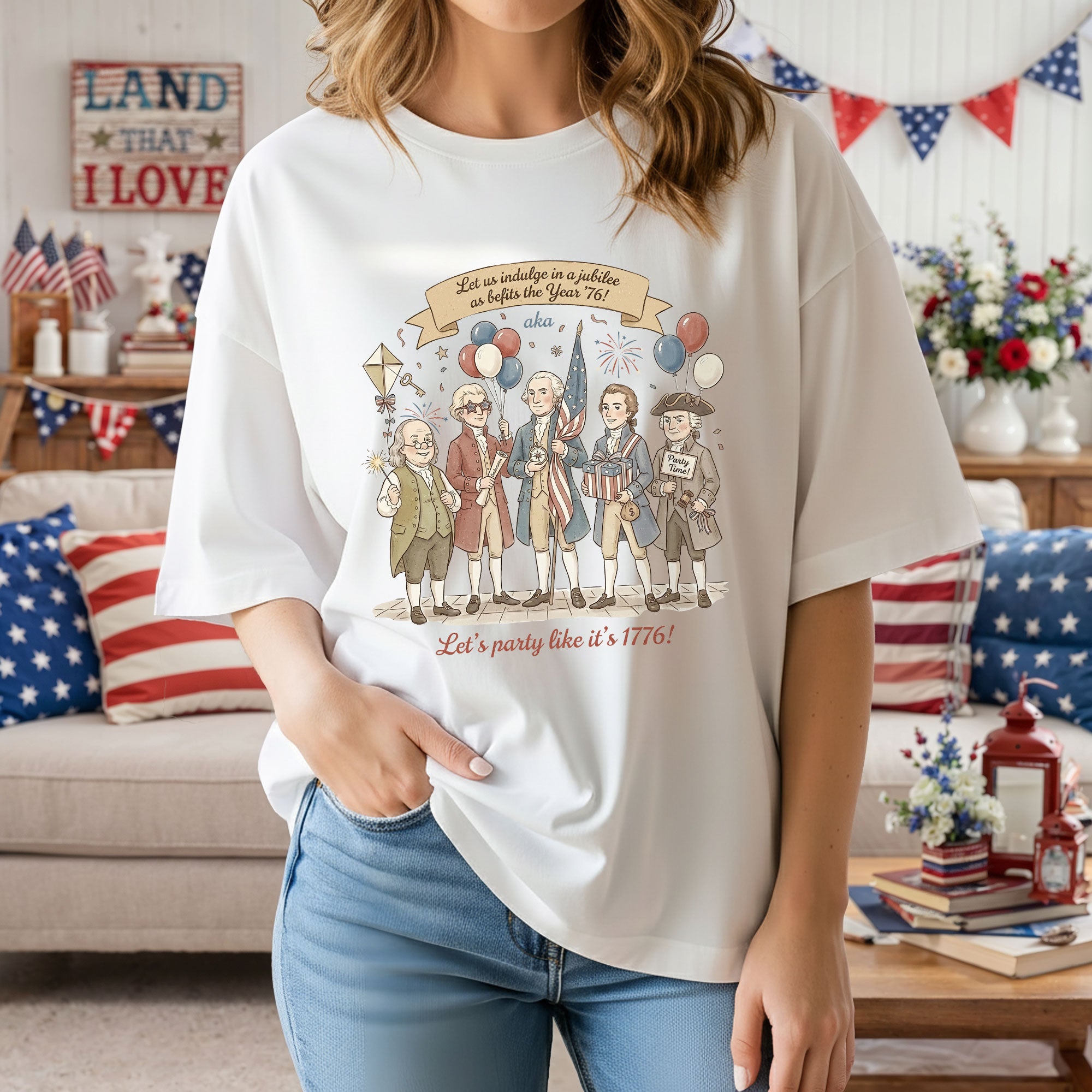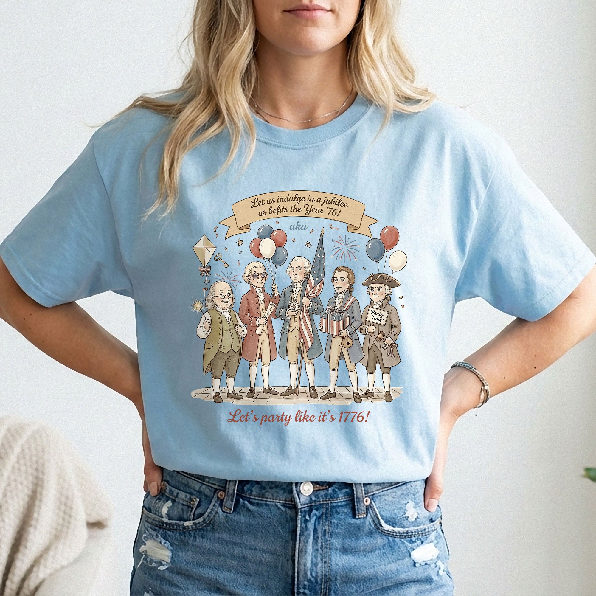 Celebrate American history with this Vintage Funny Founding Fathers Shirt featuring the iconic phrase “Let’s Party Like It’s 1776.” Designed in a classic retro style, this patriotic tee is perfect for Independence Day, parties, or everyday wear. A fun and unique gift for history lovers and USA pride fans.