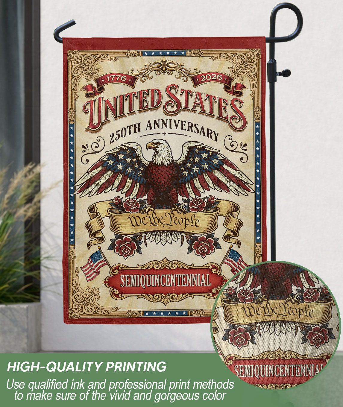 We The People 250 Years United States 1776-2026 Anniversary House Flag Bald Eagle Double Sided