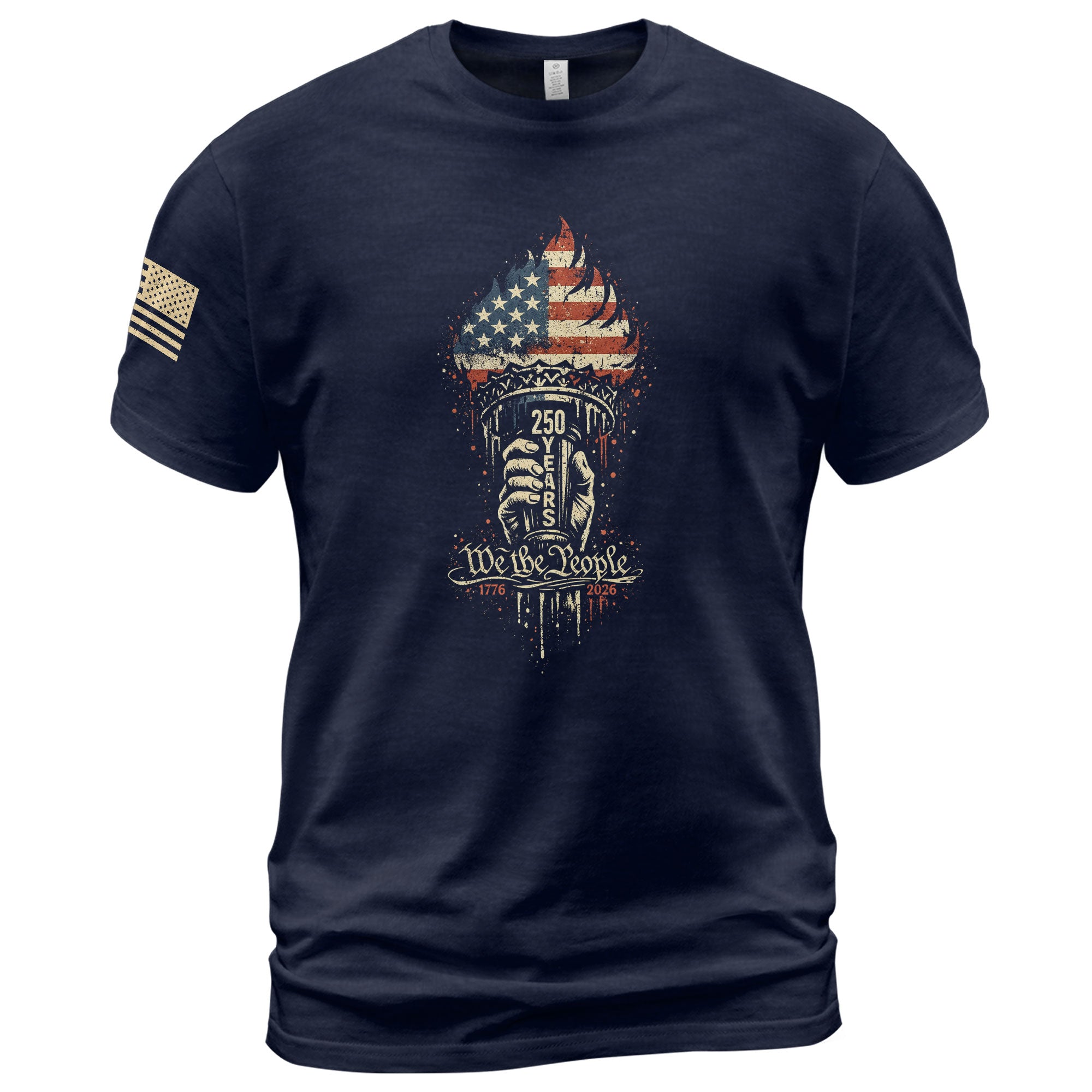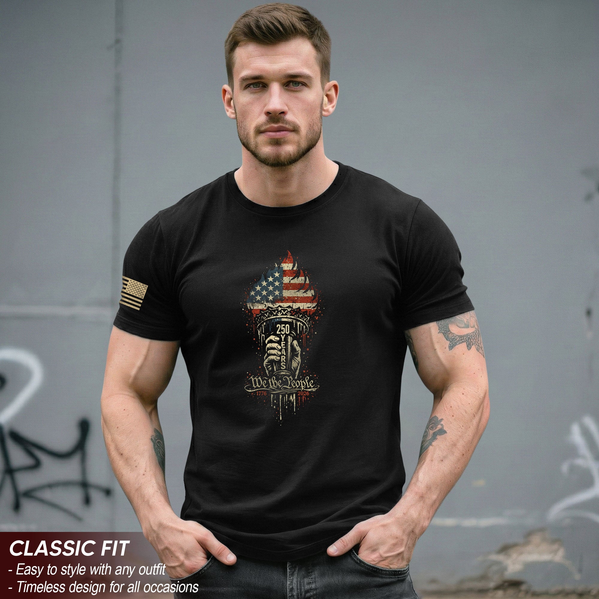 We The People 250th Anniversary 1776-2026 T-Shirt – Liberty Torch Patriotic USA Freedom Mens Tee
