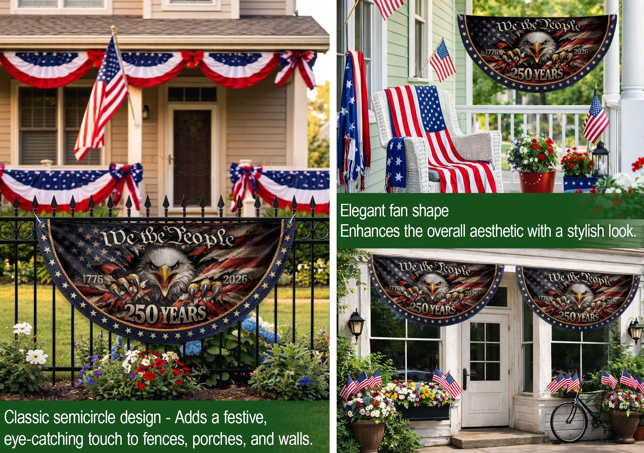 We The People Eagle Fence Flag 1776-2026 Double Sided Patriotic Banner
