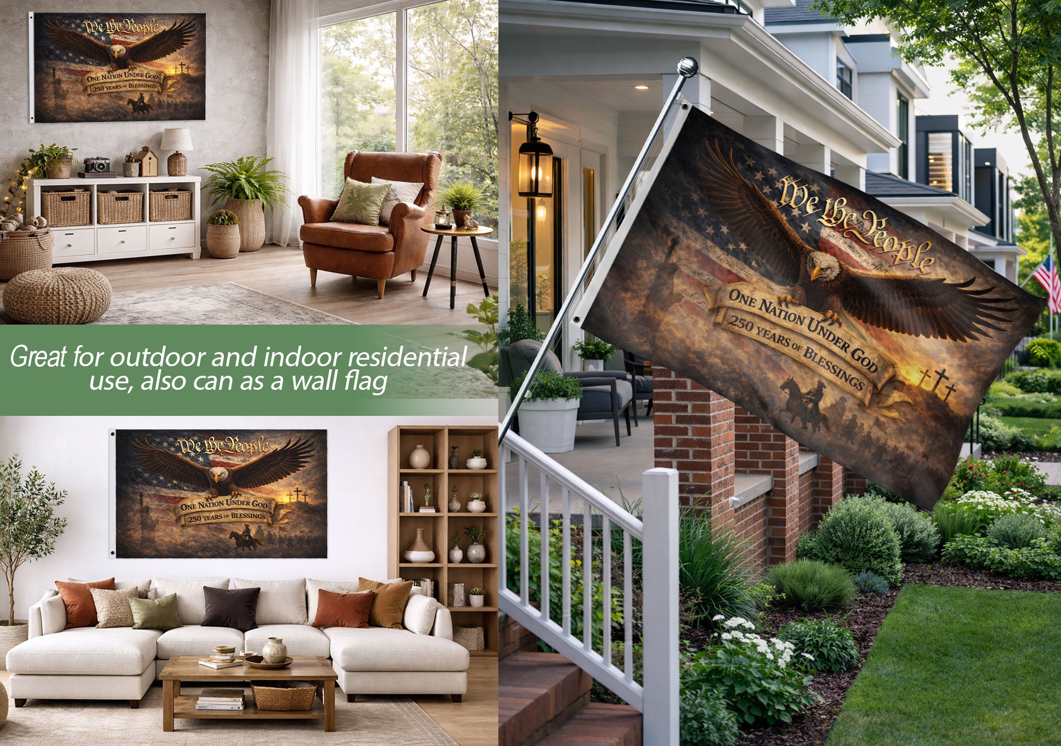 We The People One Nation Under God USA House Flag Eagle 1776-2026 250th Anniversary Patriotic